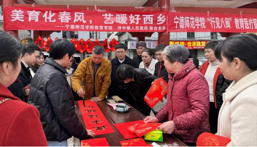 1月26日,宁德师范学院教育学院“行见八闽”美育乡野行活动走进洋中镇。艺术教育系阮蕾晔、王红伟、陈必聪、孟明磊、彭宏图五位教师,与23级艺术教育系郭昀海、袁源等学生代表共同参与,以艺术服务群众,以调研助力乡村文化振兴。